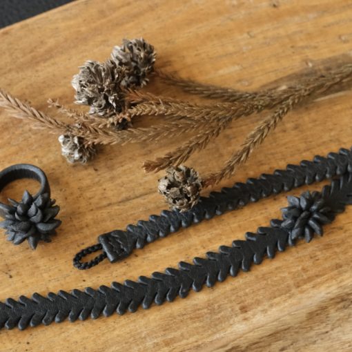 革は半裁といって牛の半身の大きさで仕入れるのですが、その縁の部分というのは、裁断して整えられた断面とは違い、一枚一枚独特の表情をしていて、とても魅力的です。ただ、同一のものをつくろうとする製品としては使用できないために、廃棄されてしまうことも多いようです。